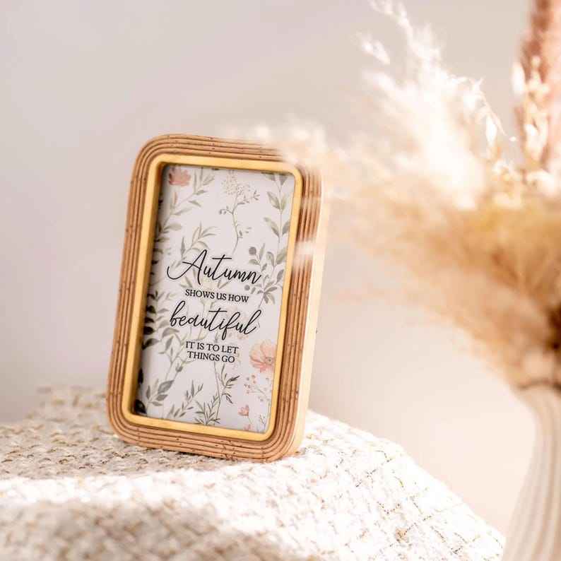 Custom 5x7 Solid Wood Picture Frame with Hand Woven - Rattan Rustic Farmhouse Tabletop Decor