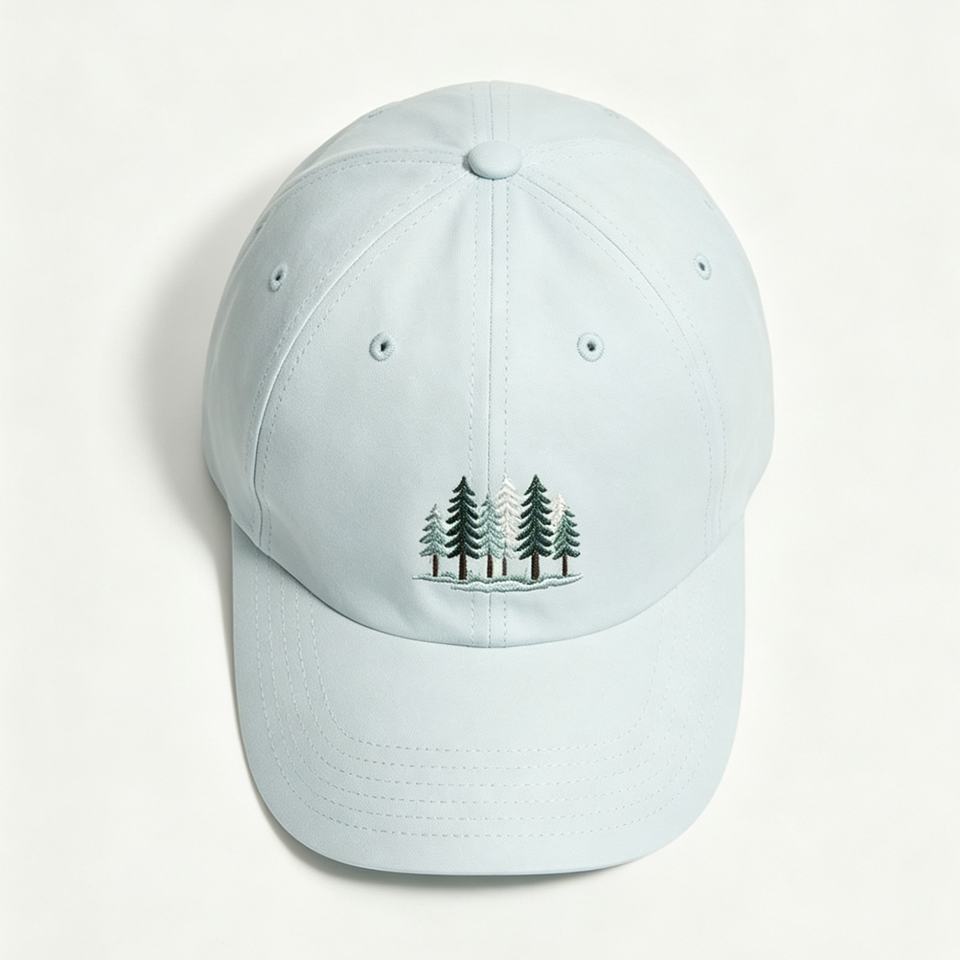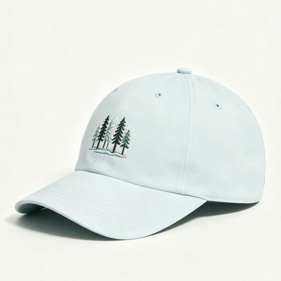 Custom 6 Panel Light Blue Baseball Cap Pine Tree Embroidery Adjustable Dad Hat Breathable Sun Protection Outdoor Sports Cap
