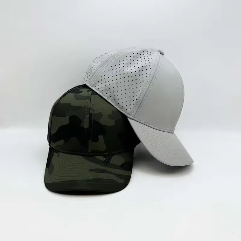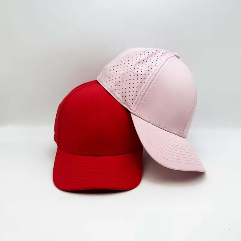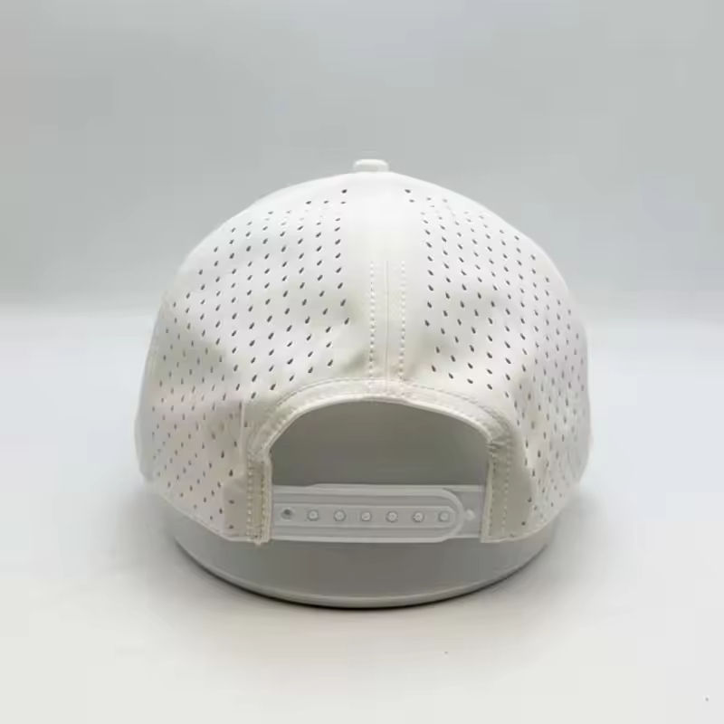 Custom 6-Panel PVC 3D Embroidered Logo Waterproof Laser Cut Hole Perforated Sporty Baseball Cap Curved Brim Golf Hat