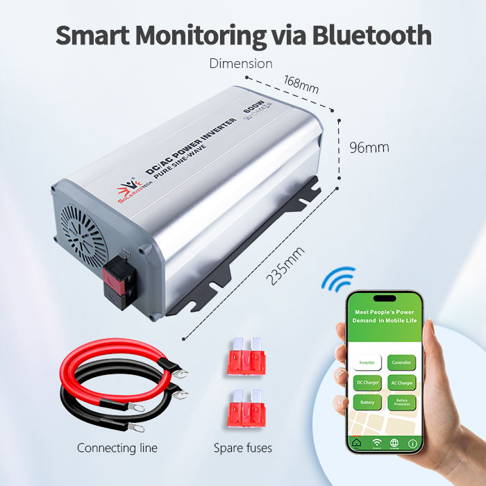 Custom 600 Watt Power Inverter NK Series 12V/24V 220V DC to AC Invert with APP Control for Solar Panel Power System Converter