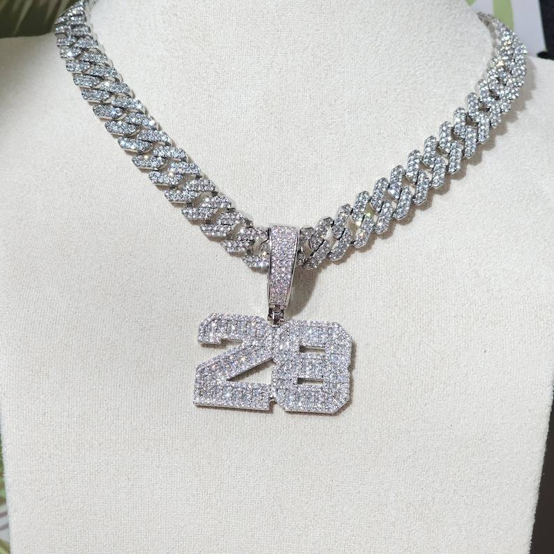 Custom 925 Silver Jewelry Gift Iced Moissanite Diamond Number Name Necklace with Cuban Chain for Wedding Engagement for Him Her
