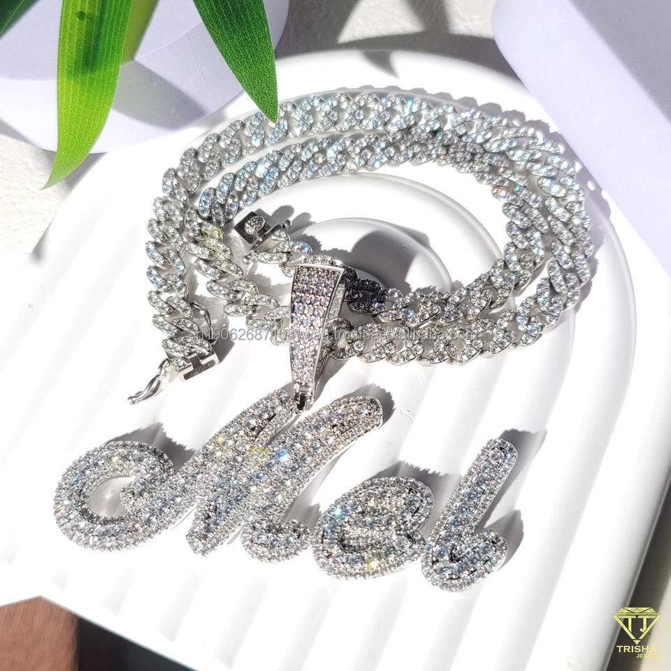 Custom 925 Silver and Moissanite Bling Personalized Iced Out Hip Hop Pendant Necklace Mel Charm