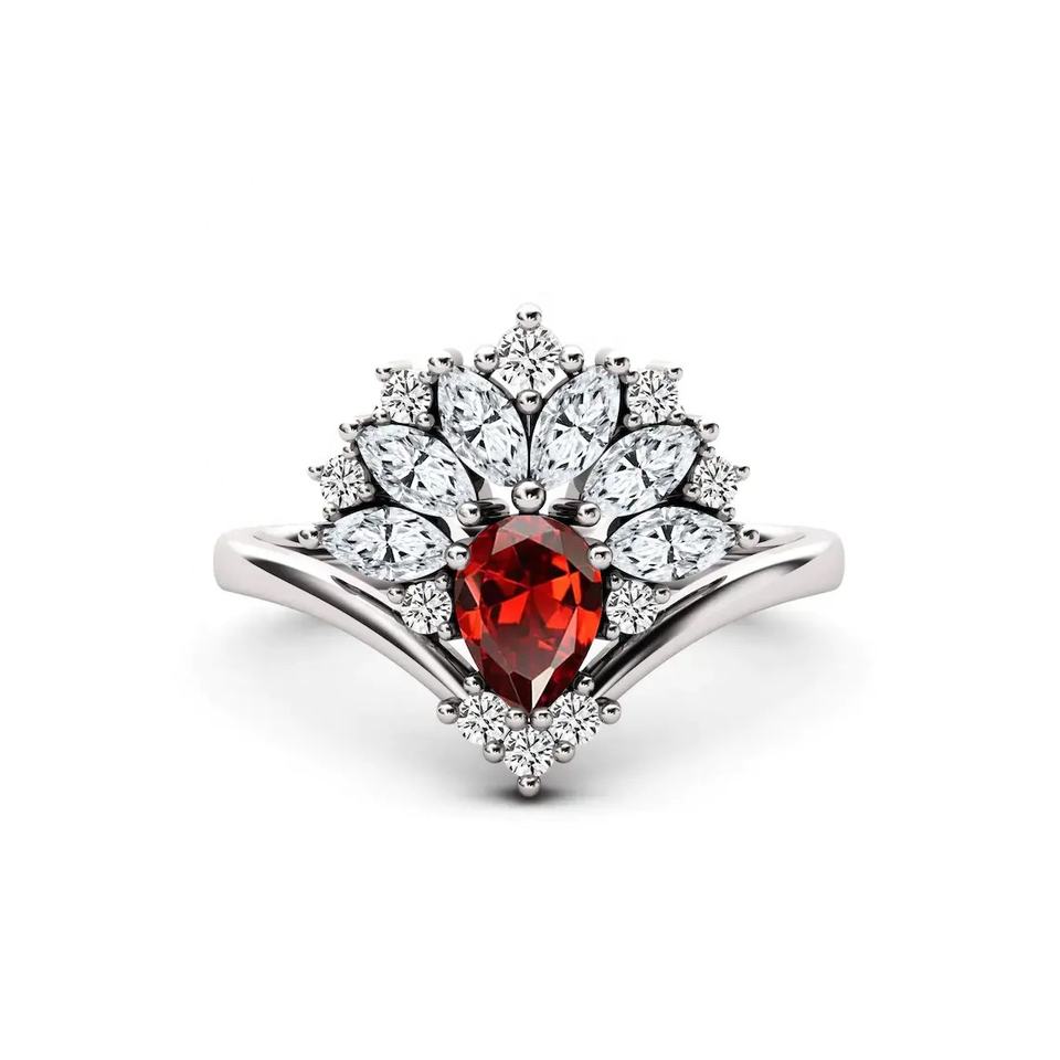 Custom 925 Sterling Silver Ruby Pear Loose Gemstone Engagement Ring Handmade Fashion Jewelry Dainty Silver Rings For Girls