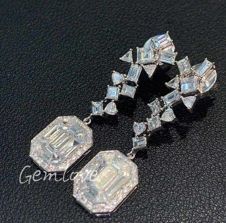 Custom 9K/14K/18K Gold Women's Diamond Earrings - IGI Certified Lab-Grown, Asscher & Heart Cut Dangle Earrings for Gift