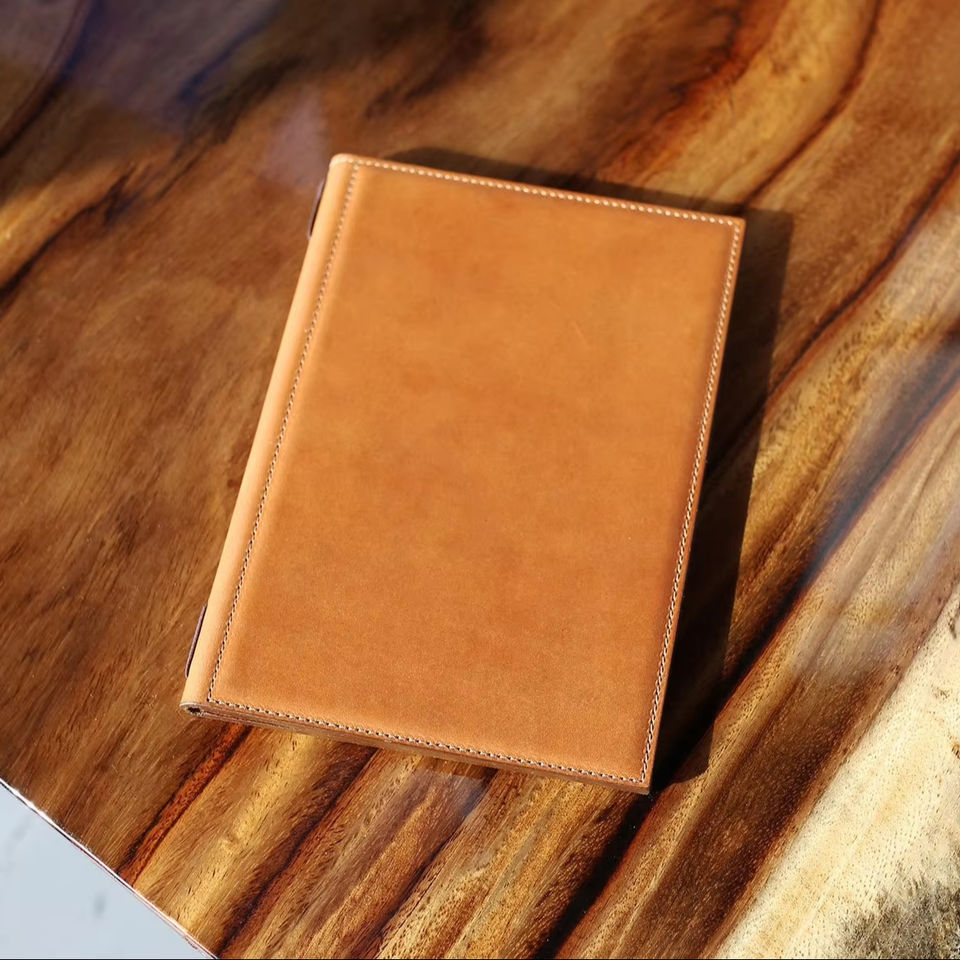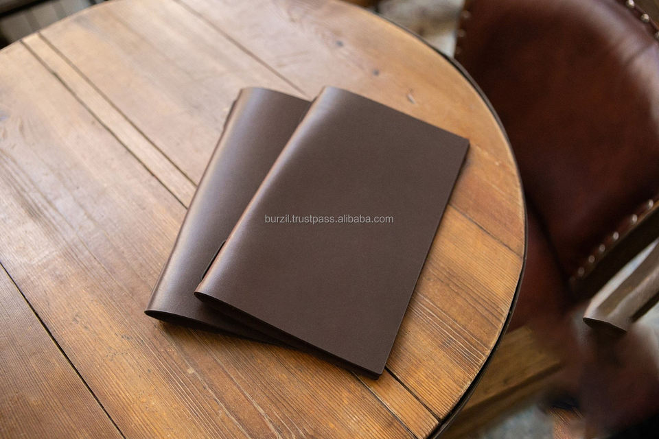 Custom A5 Half Letter Leather Cover Menu Folder for Restaurants and Hotels ALM-0036 Wood and Metal Material A4 Size