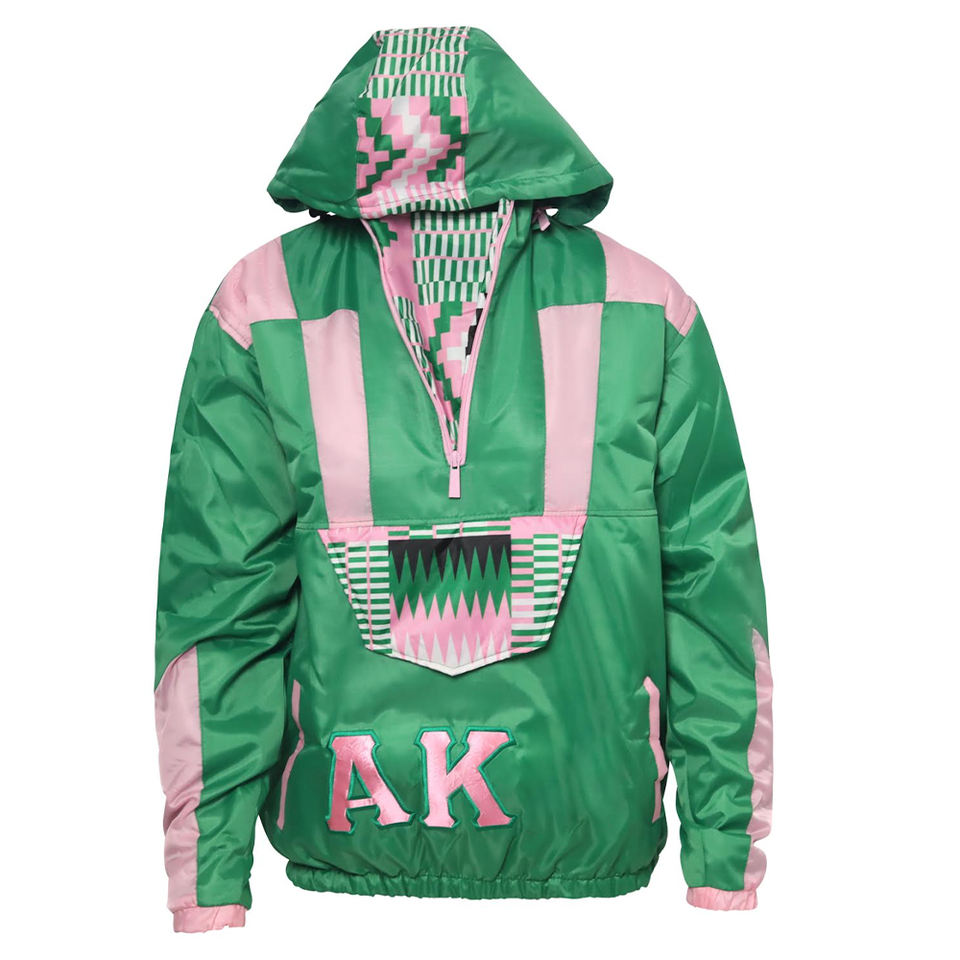 Custom AKA sorority Half Zip pink/green Windbreaker Jacket polyester men's jackets windproof Hoodie Waterproof Pocket Anorak