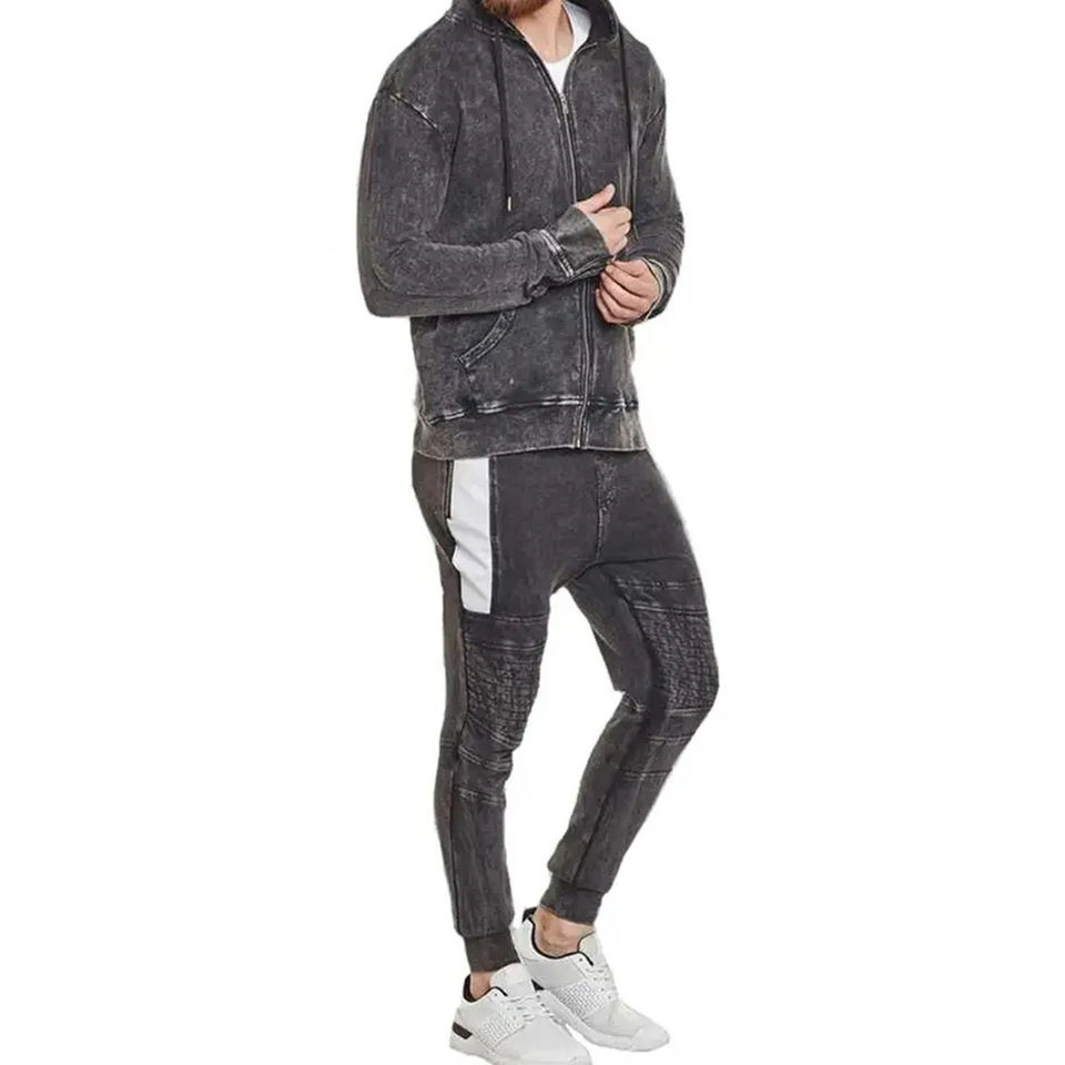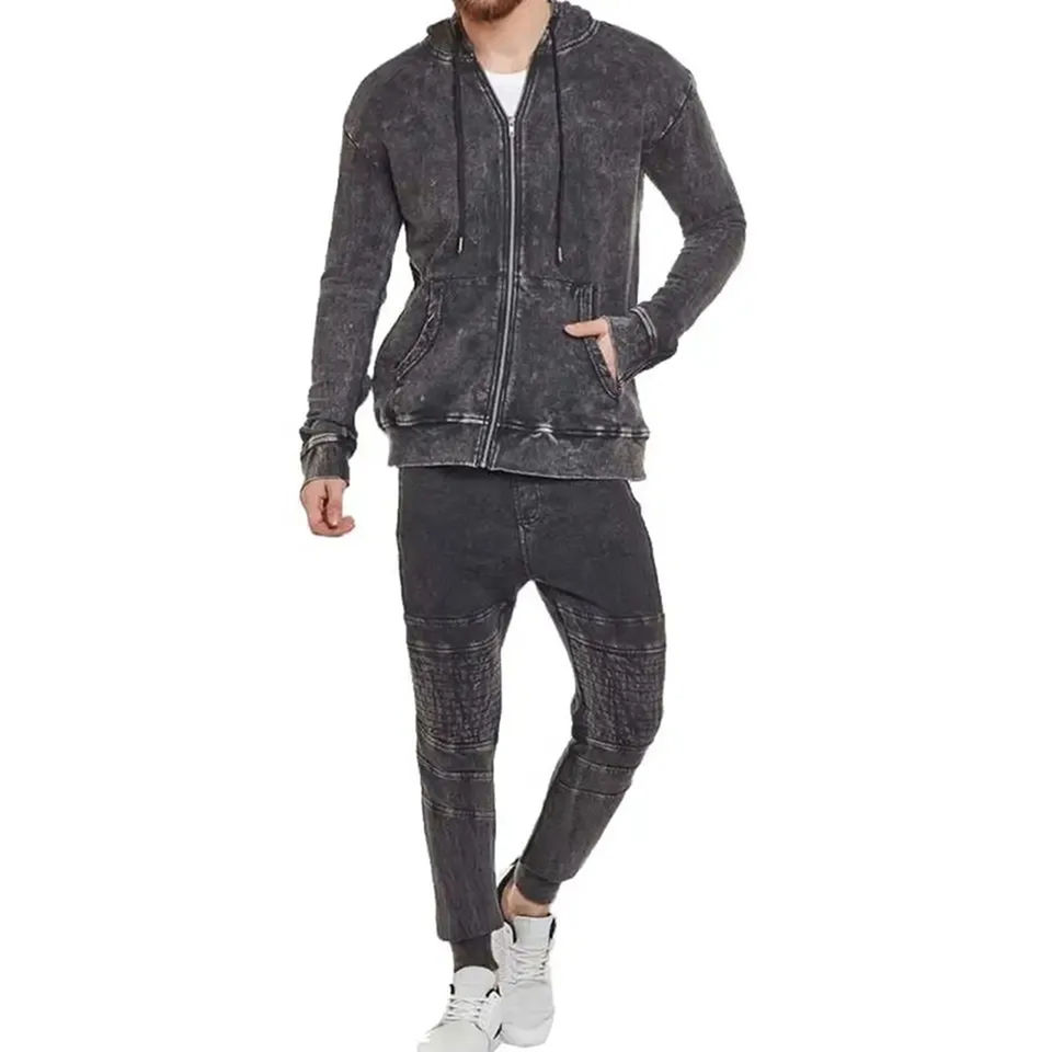 Custom Acid Wash Pullover Tracksuits for men 500 GSM Distress Embroidery men Hoodie Sweatpants Oversized Unisex 2 Piece Sets