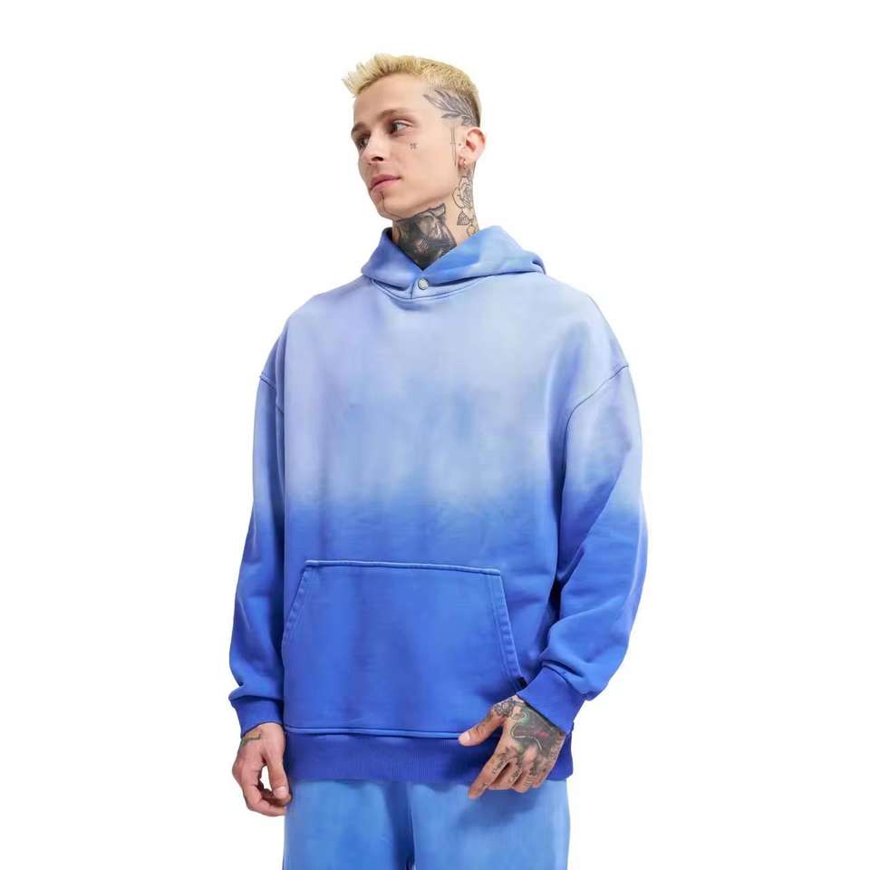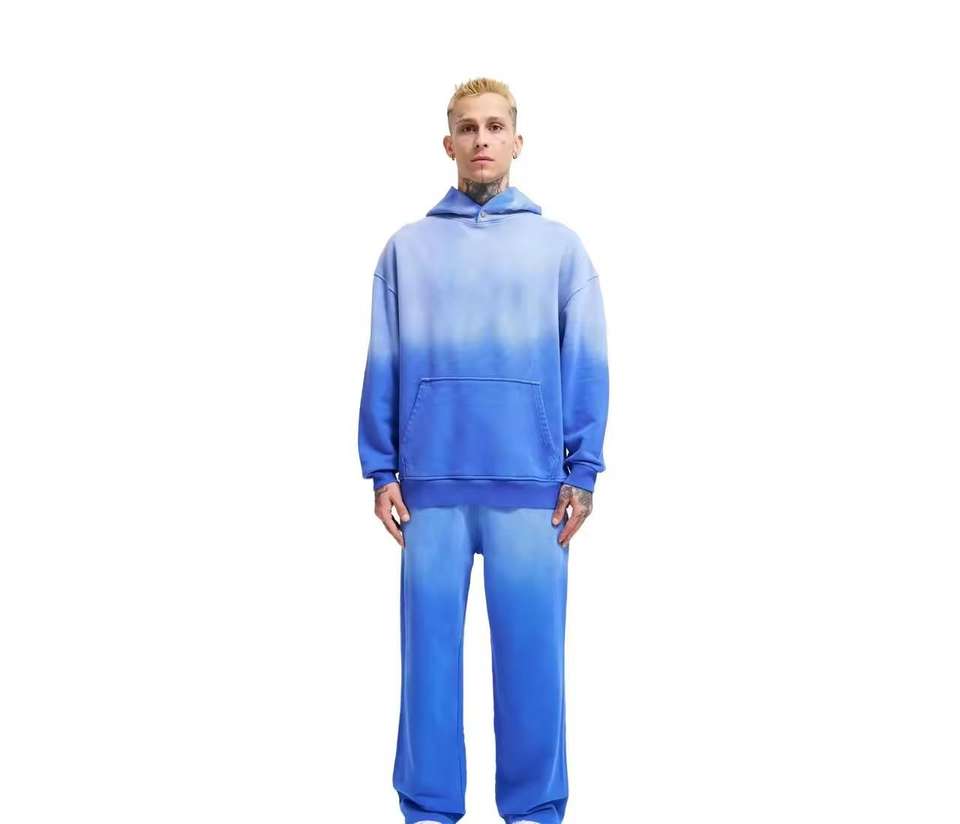 Custom Acid Wash Sublimation Unisex Hooded Heavyweight Tracksuit Distressed Embroidery Sun Faded Zip Sweatsuits Jogger Set