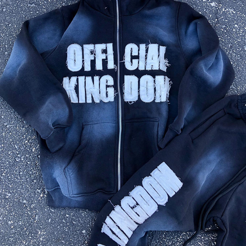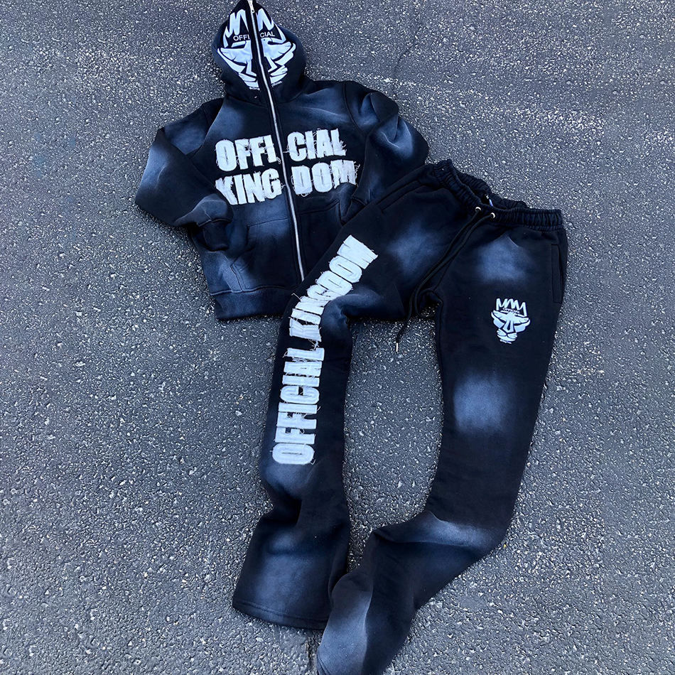Custom Acid Wash Sublimation Unisex Hooded Heavyweight Tracksuit Distressed Embroidery Sun Faded Zip Sweatsuits Jogger Set