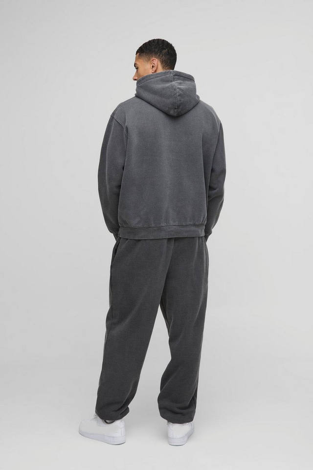 Custom Acid Wash Winter Oversize Hoodie Set Unisex Custom Printed Kangaroo Pocket Washed Hoodie Sweatpants Rhinestone Tracksuit