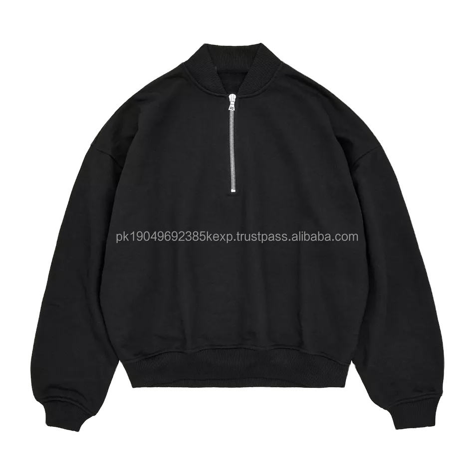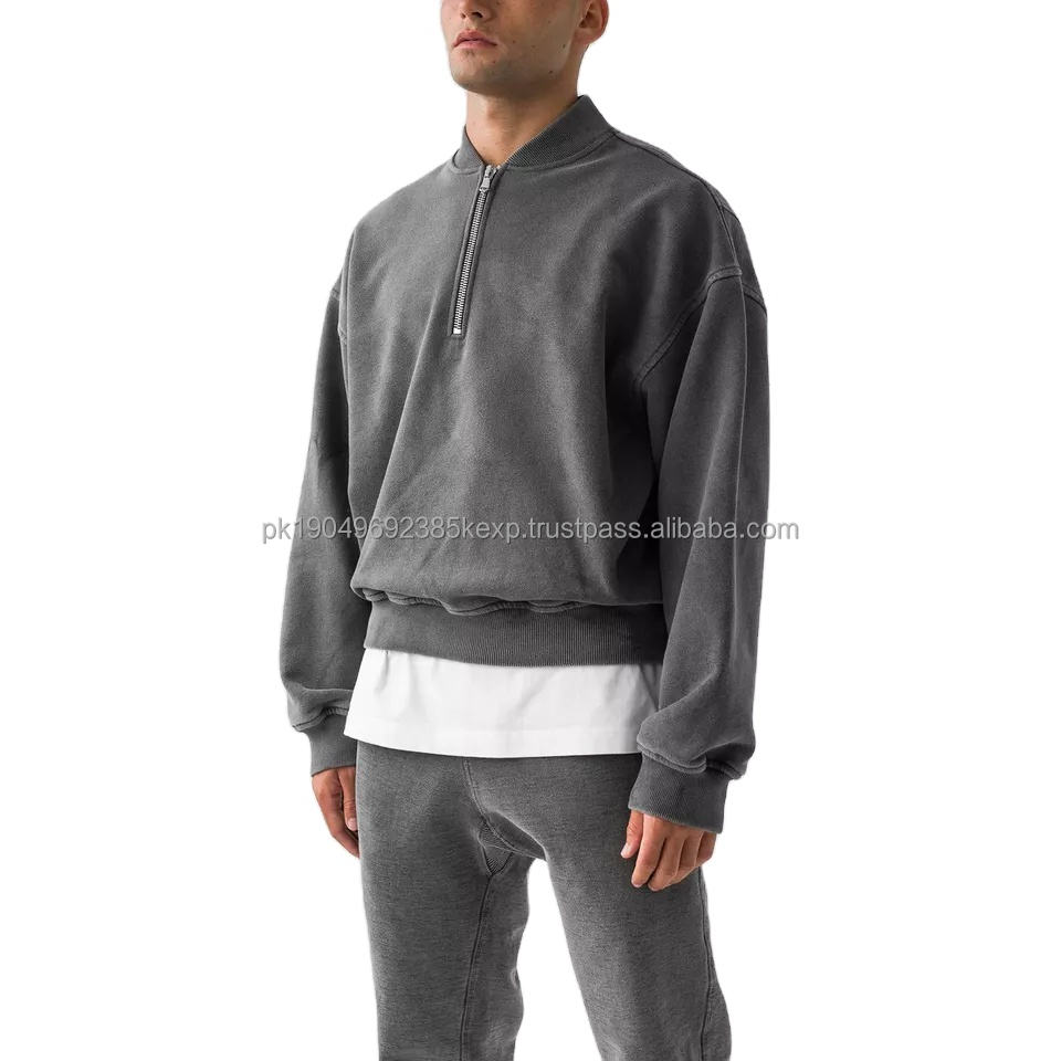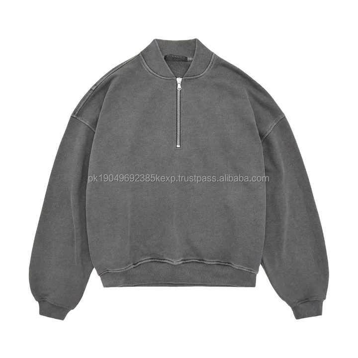 Custom Acid Washed 400GSM French Terry Hoodies Half Zipper Jumper Men 14 Quarter Zipper Sweatshirt Vintage
