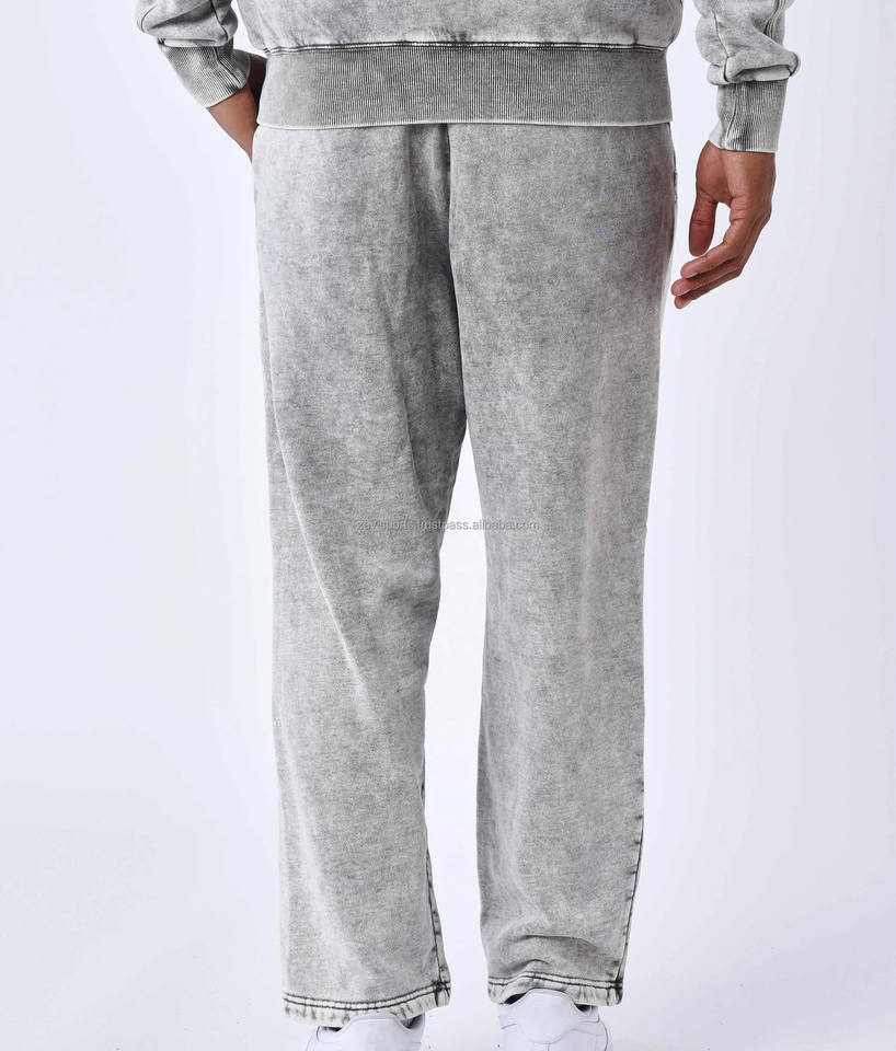 Custom Acid Washed Applique Patch Embroidery Jogger Tracksuits Acid Wash Flared Sweatsuit Hoodie and Sweatpants Set for Men