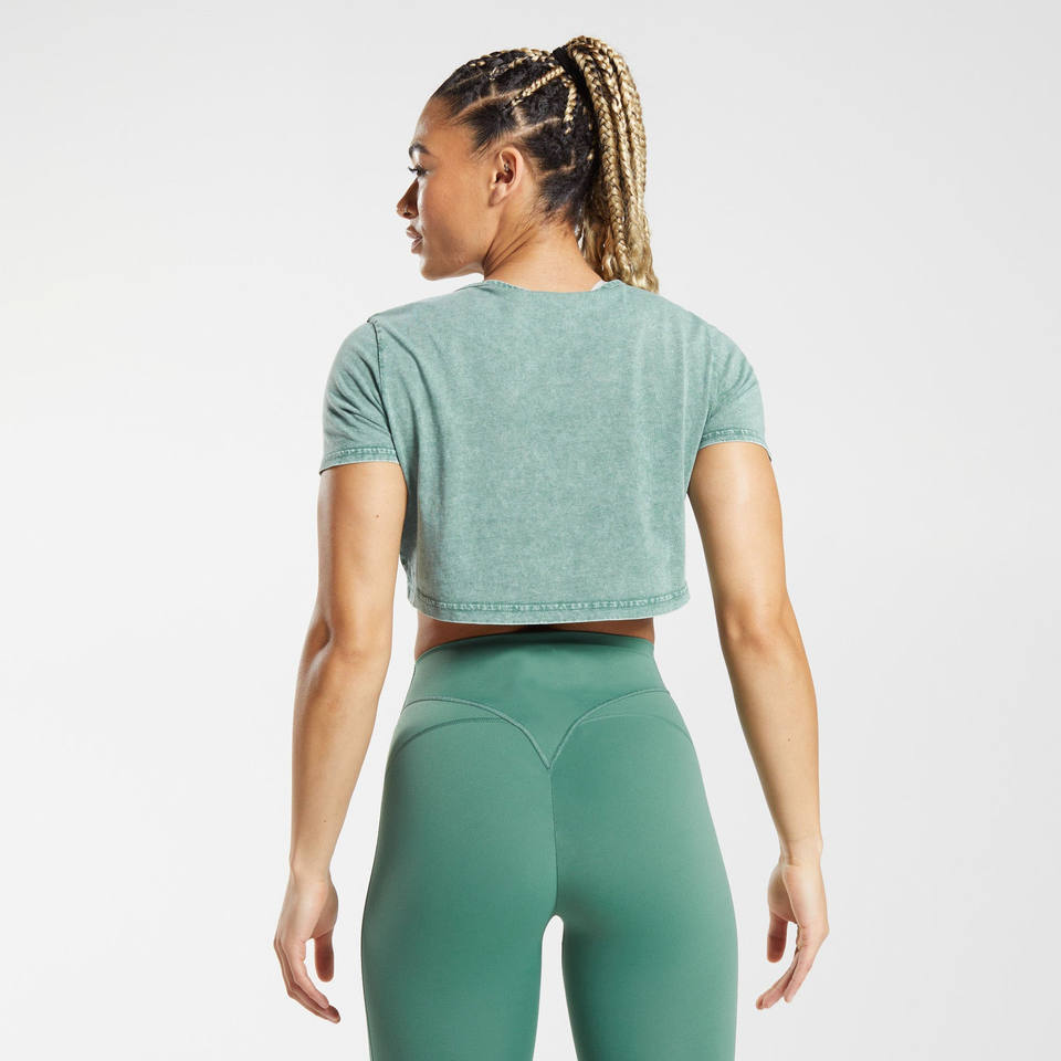 Custom Acid Washed Crop Top Women O-Neck Short Sleeves Anti-Pilling Custom GSM Embroidery Decoration Cropped T Shirt