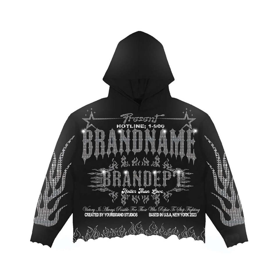 Custom Acid Washed Rhinestones Cotton French Terry Oversized men Tracksuit Heavyweights Flare Sweatpants and Hoodie Set for men