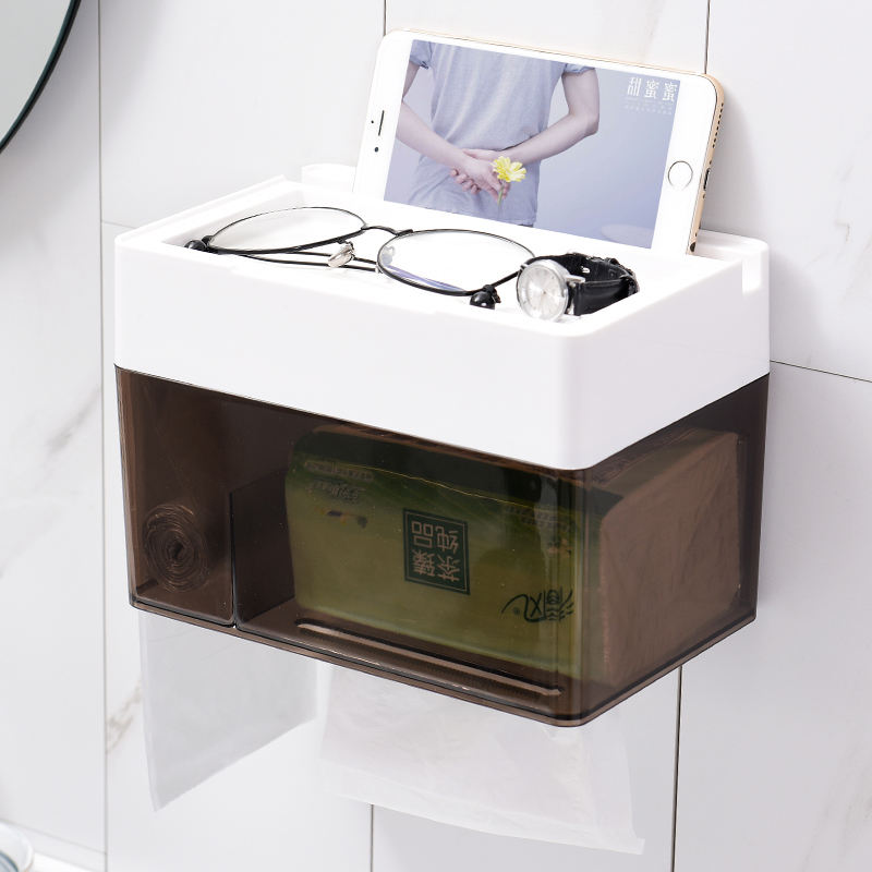 Custom Adhesive Hard Plastic Wall Mounted Japandi Style Tissue Paper Storage Box Organizer Acrylic Bathroom Lid Drill-Free