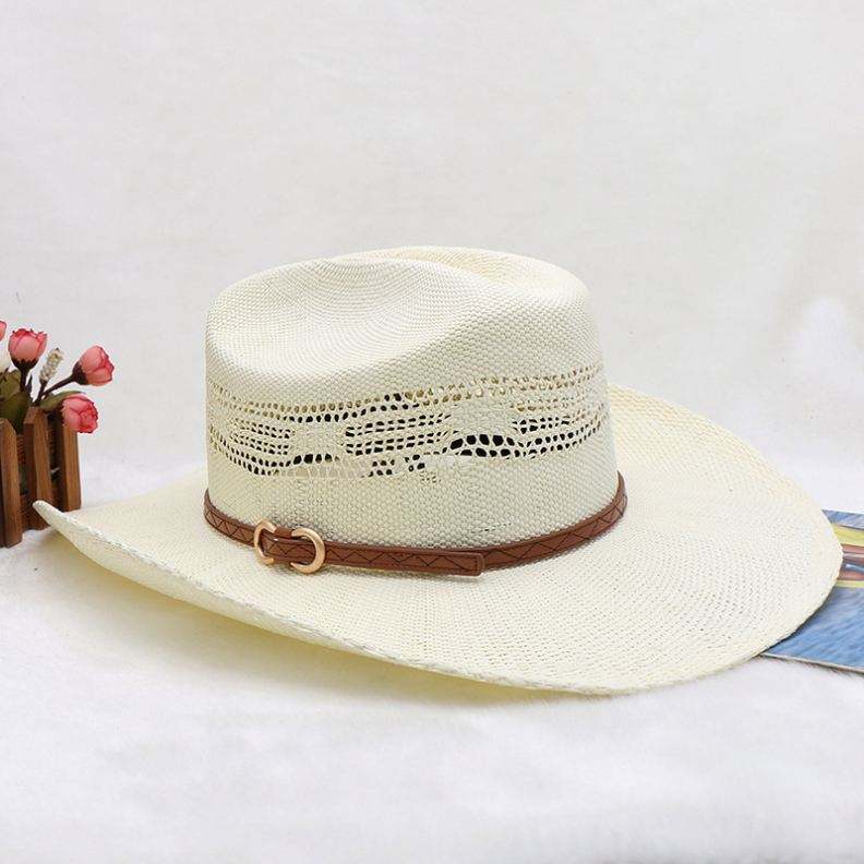 Custom Adult Unisex Casual Outdoor Travel Paper Straw Cowboy Hat with Wide Brim for Summer