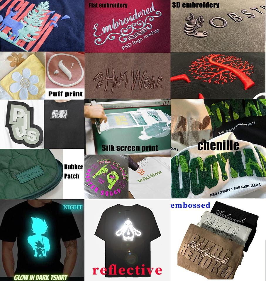 Logo position:Front, Left Sleeve, Right Sleeve, back, back neck, lower hem