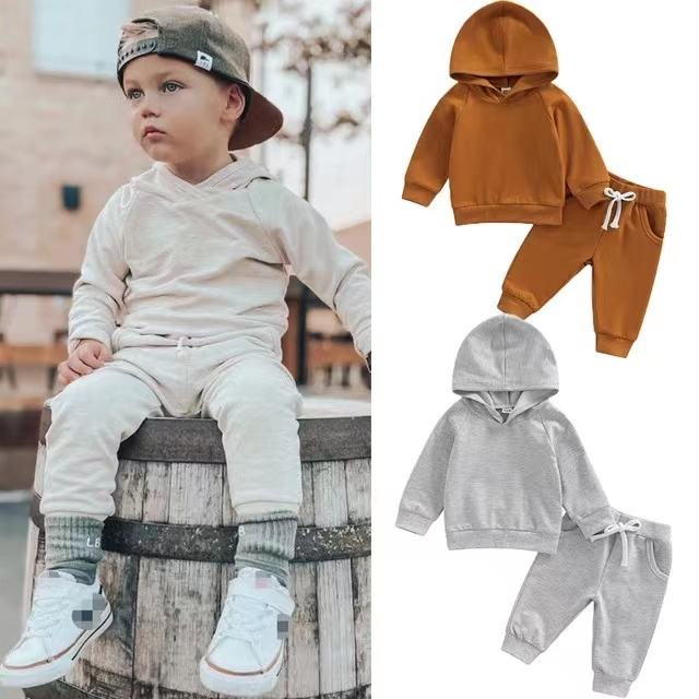 Custom Adults Breathable Plus Size Hooded Hoodie Tracksuit Set Grey and Brown Two Piece Jogger Outfit Soft Cotton Sportswear