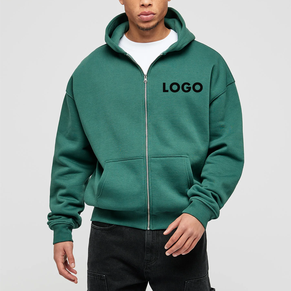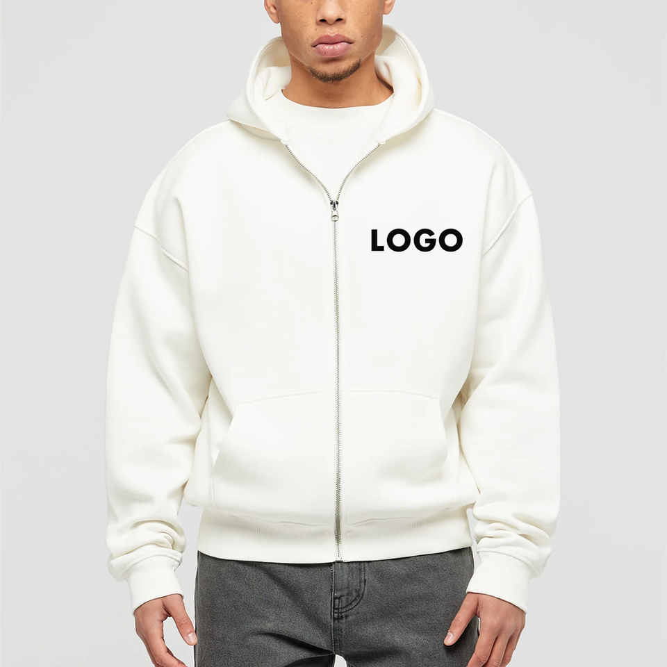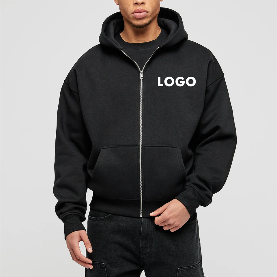 Custom All Over Print Embroidered Winter Hoodie Puff Printing Cotton Heavyweight Fleece Full Zip up Pocket Plain Dyed Wholesale