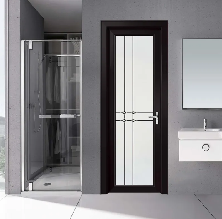 Custom Aluminium Toilet Door 2025 Design Waterproof Brushed Glass Door for Commercial Restroom
