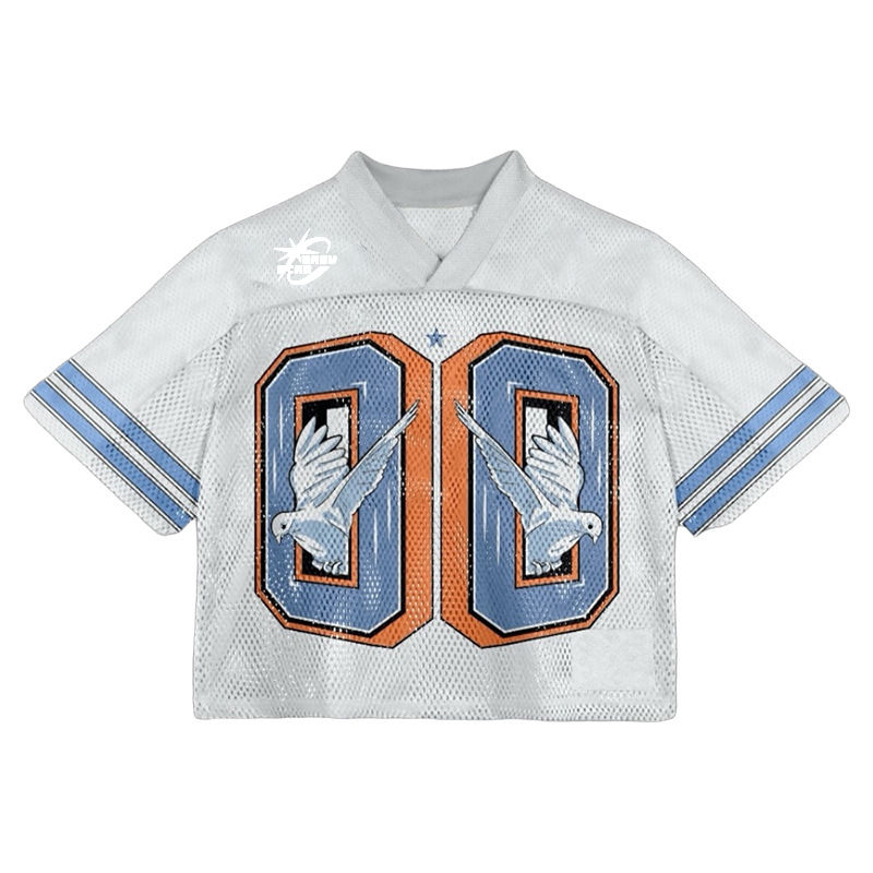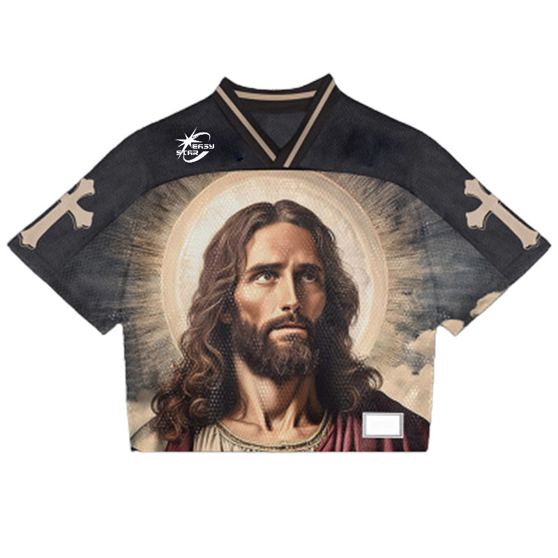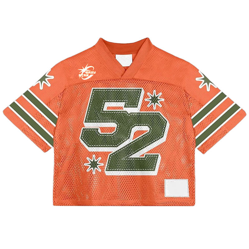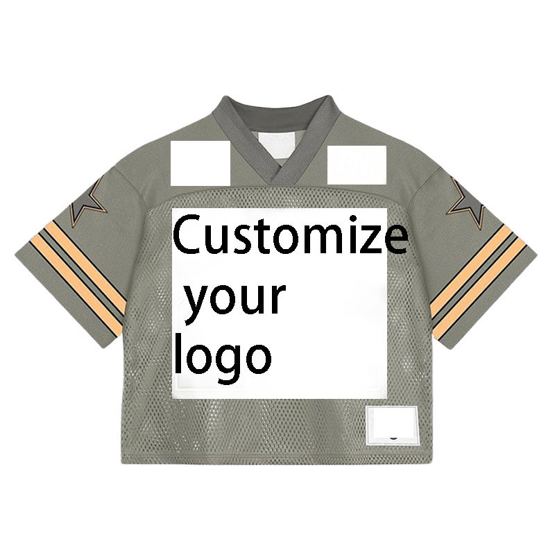 Custom American Football Jersey Streetwear Retro Printed Quick Dry Oversized T-shirts Boxy Cropped Mesh 100% Polyester