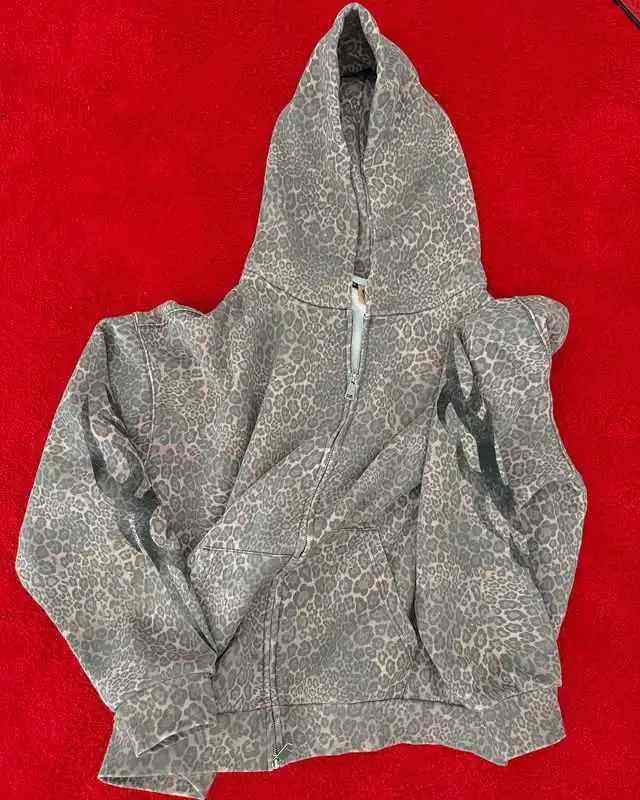 Custom Animal Leopard Cheetah Printed Heavy 100% Cotton French Terry Graphic Pullover Sweatshirt Wash Zipper Hoodie