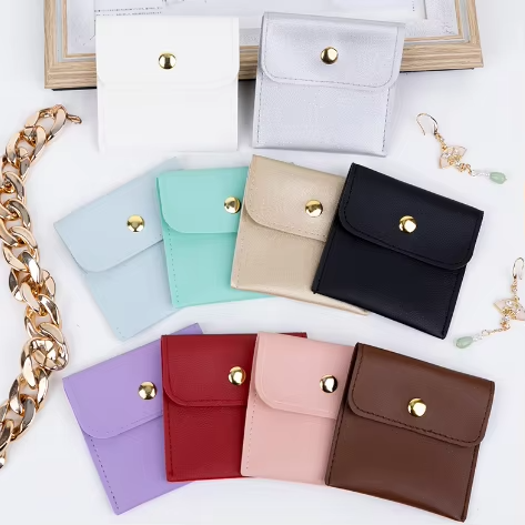 Custom Anti-Oxidation Dark Button Matte PU Leather Square 8*8cm Fashionable Jewelry Bag Portable Rings Necklaces Bracelets EQ