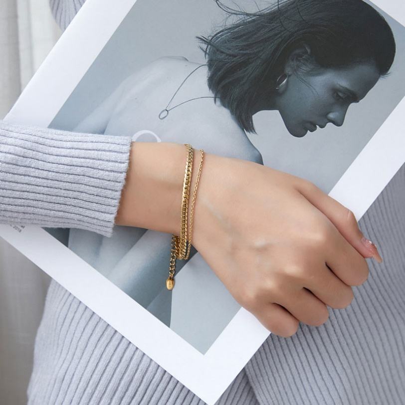 Custom Anti Tarnish Waterproof Luxury Stainless Steel Wholesale 14k 18k Gold Plated Snake Chain Bracelet for Women