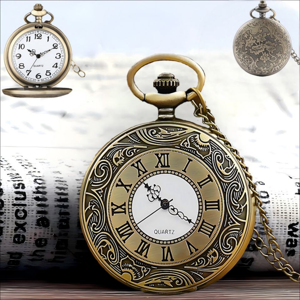 Custom Antique Style Unisex Quartz Pocket Watch Stainless Steel Strap Chain 52g Gift for Men Groomsman