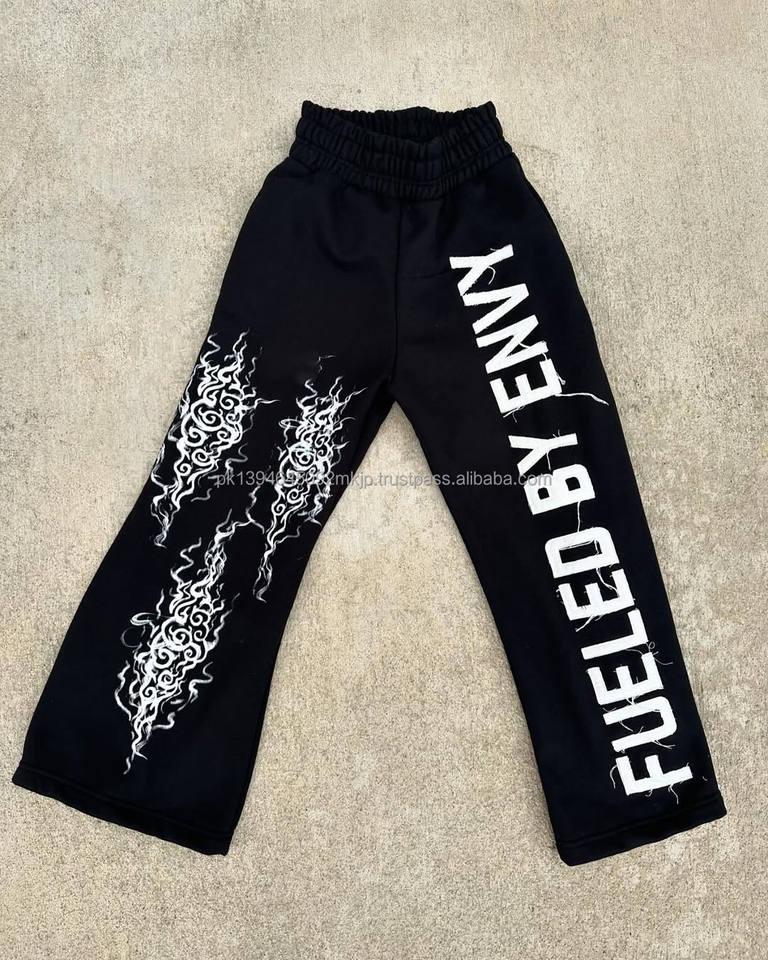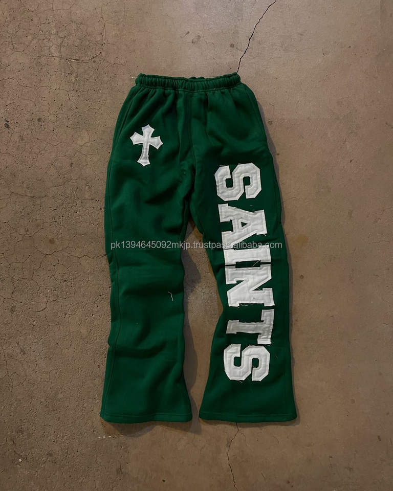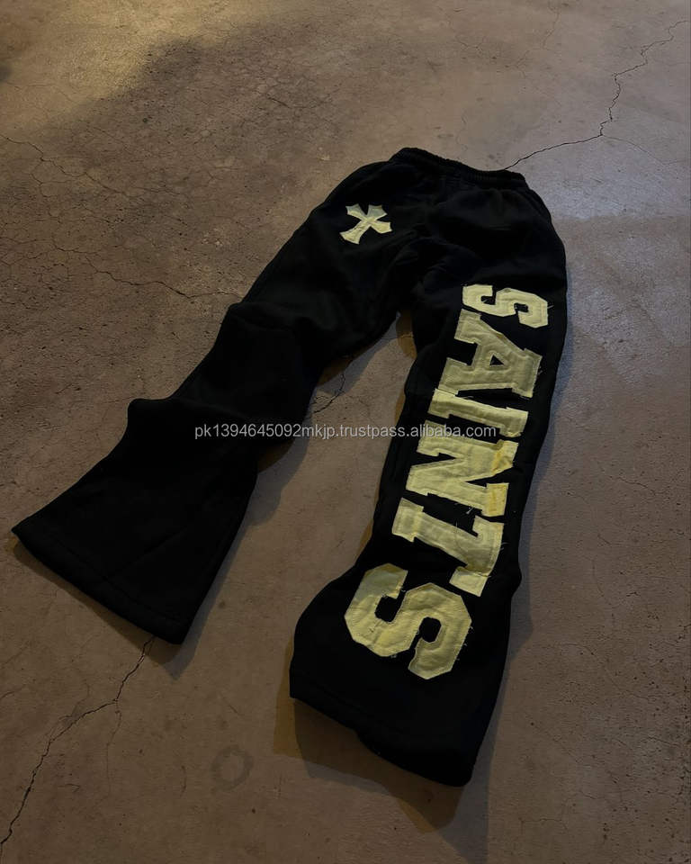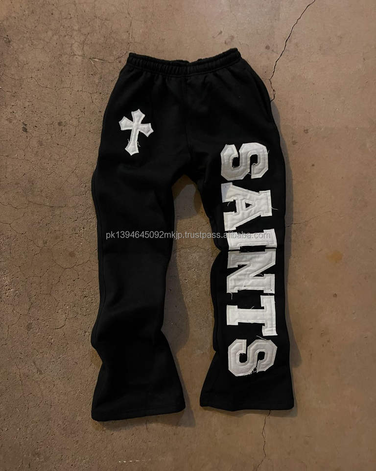 Custom 100% Cotton Flared Sweatpants for Men Luxury Vintage High Waist Baggy Casual Pants with Applique Cut Sew Lightweight
