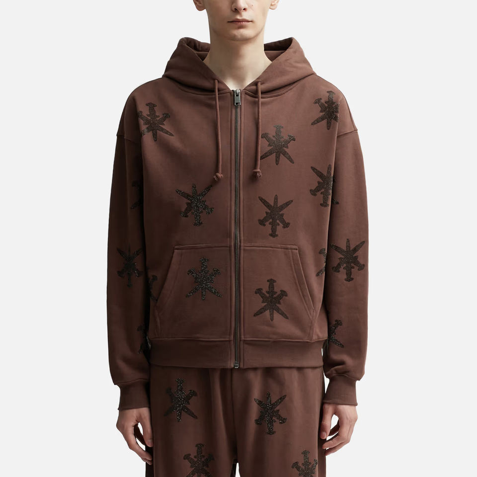 Custom Applique Embroidery Distressed Hoodies Rhinestone Zip Jacket Acid Wash Vintage Washed Men Fleece Streetwear 100% Winter