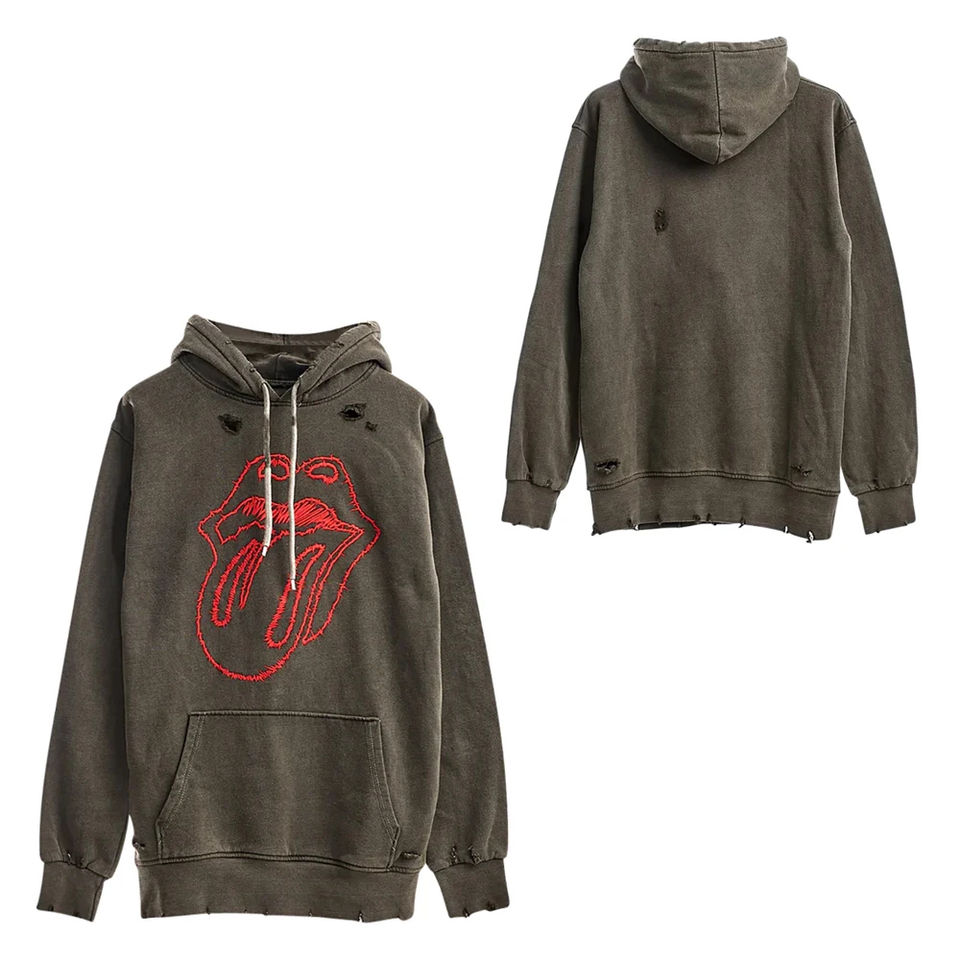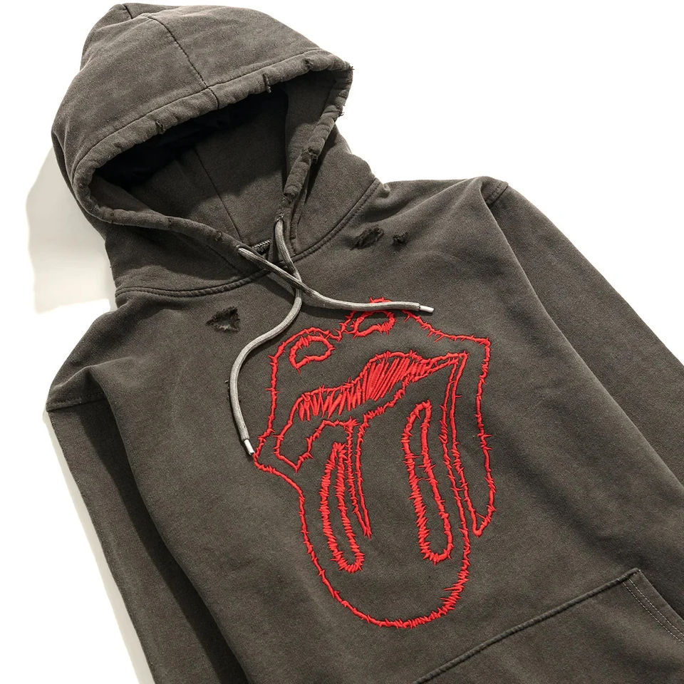 Custom Applique Embroidery Distressed Hoodies Rhinestone Zip Jacket Acid Wash Vintage Washed Men Fleece Solid ODM 2 Pcs
