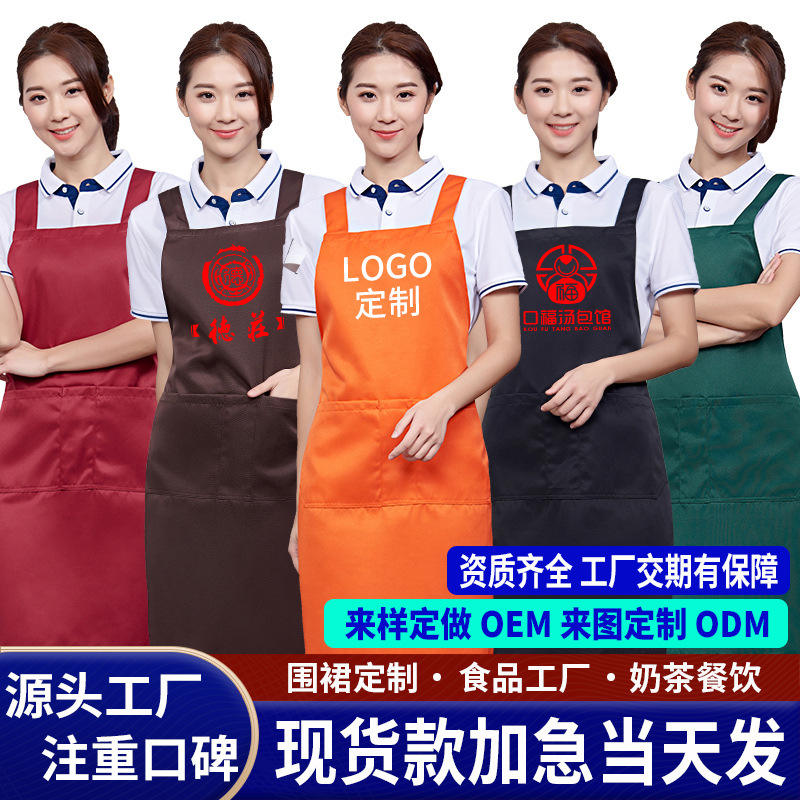 Custom Aprons With Double Shoulder Straps Polyester Material Silk Screen Printing For Restaurant Bar Work Uniforms