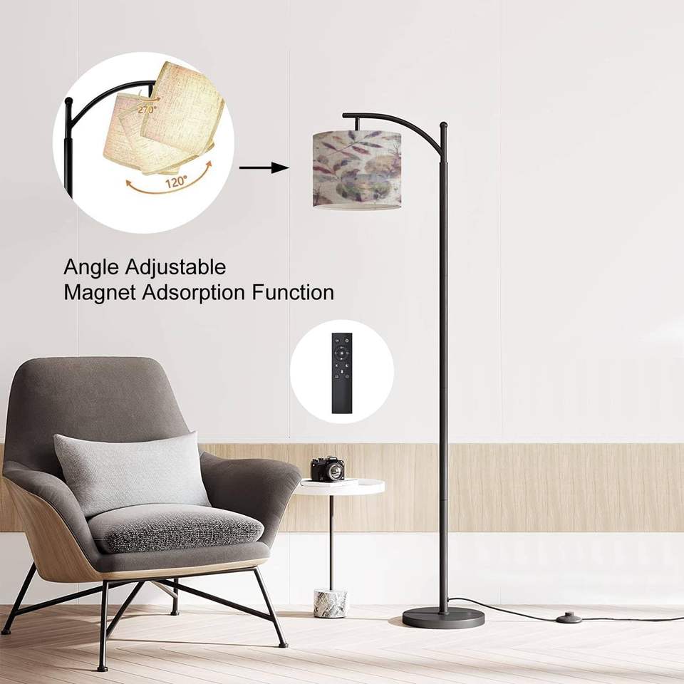 Custom Arc Floor Lamp Mixed Media Botanical Pressed Metal Stand E27 LED Light Linen Shade Print Demand Minimum Order 1 Unit