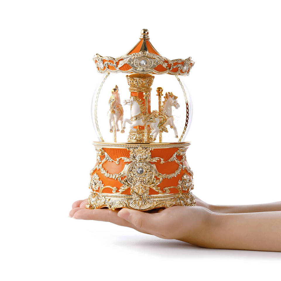 Custom Artistic Resin Orange Carousel Musical Water Globe Christmas Decoration Gift Light Handmade Hand-painted Resin Crafts