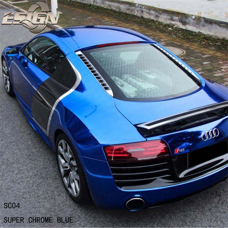 Custom Automotive Wrap Vinyl Film Foil Sticker Mirror Chrome Blue Car Cover Decal Glossy Bubble-Free PVC Vehicle Wrap
