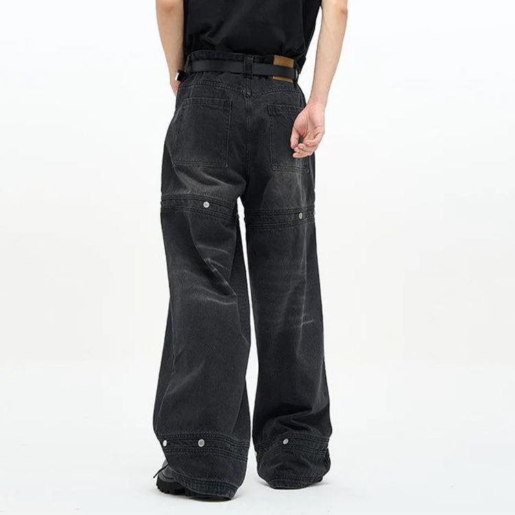 Custom Baggy Jeans Men New Straight Stitching Rivet Black Jeans Wash Vintage Streetwear Jeans Pants for Men Women 2025