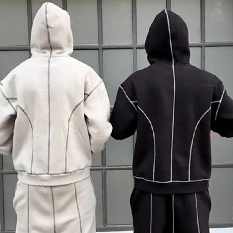 Custom Baggy Jogger Tracksuit For Men Dtg Print Piping Sweat Suit Y2K Street Retro Letter Print Hoodie Sweatpants Two-Piece Set