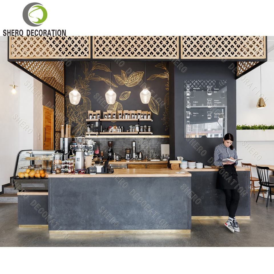 Custom Bar Counter Furniture Design Modern Coffee Shop Display Showcase Shop Fixture with Coffee Shop Interior Decoration