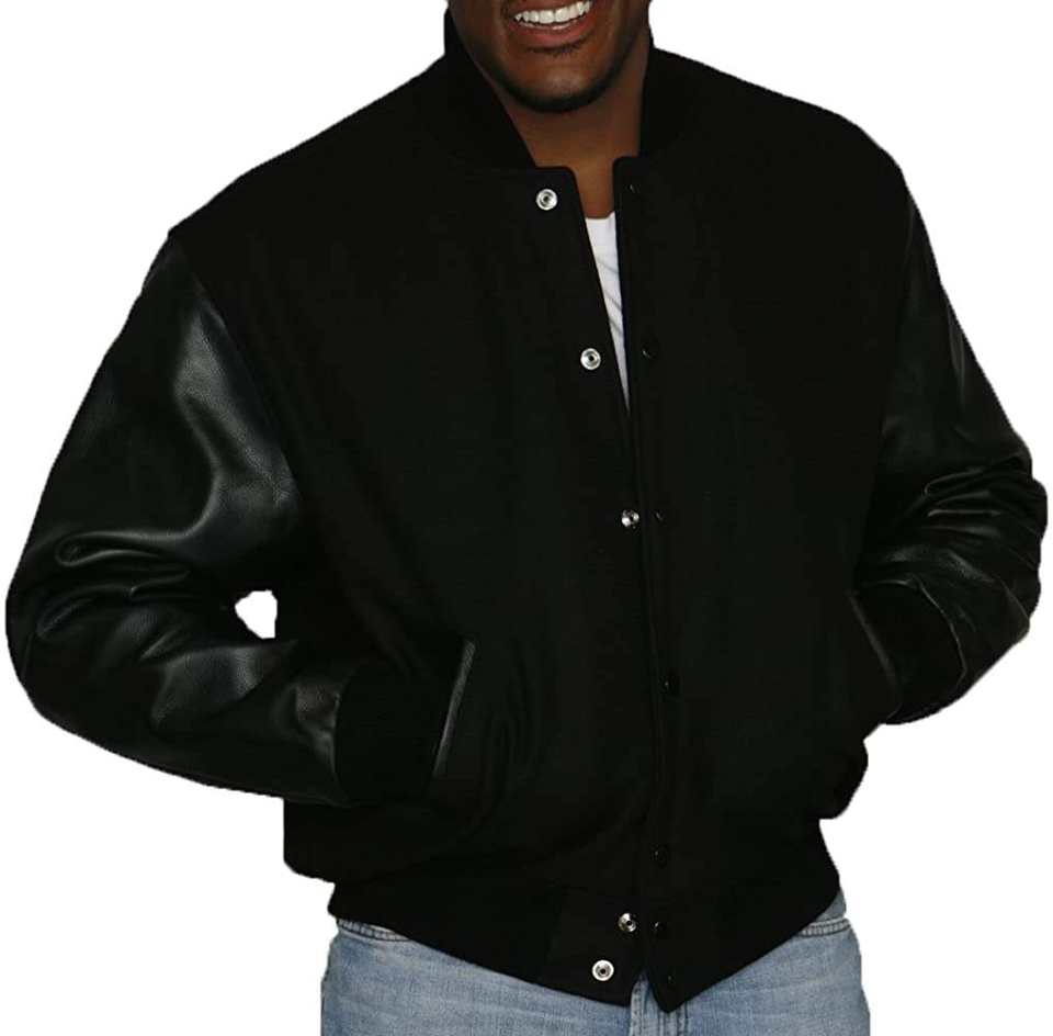 Custom Baseball Jacket Wool and Leather Sleeves in Black for Men / American Football Jacket Customized School boy Jacket
