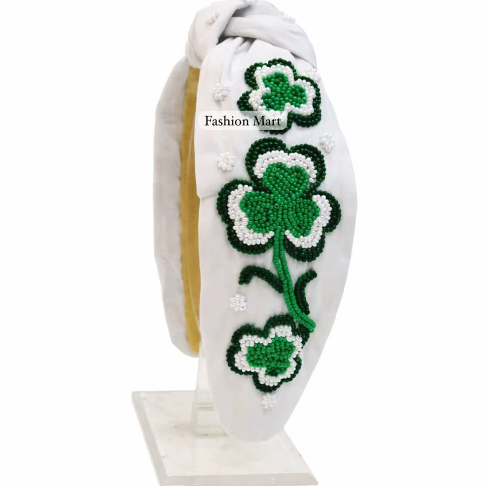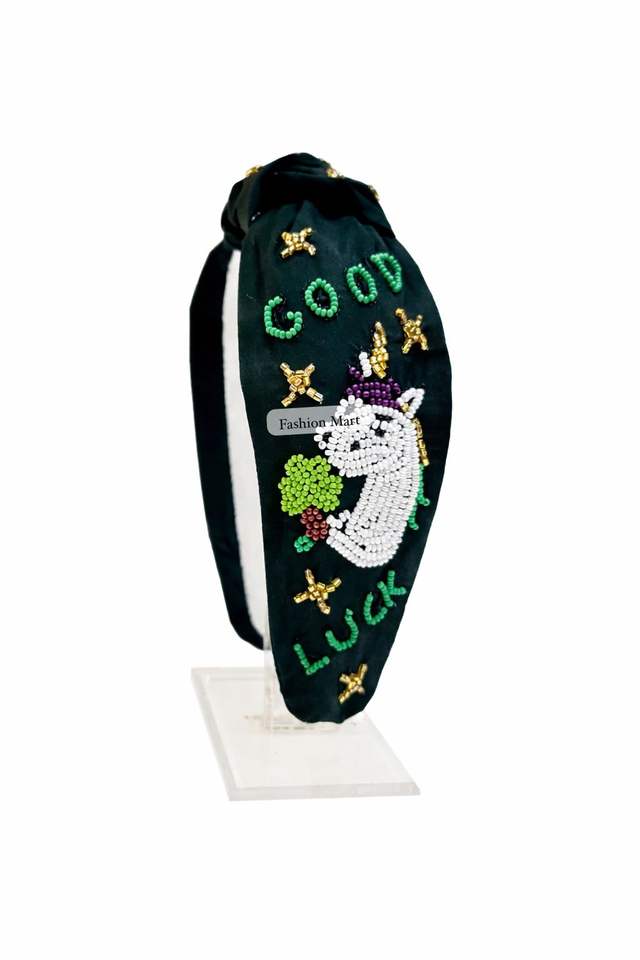 Custom Beaded Headband For Women Good Luck And Clover Design Party And Festival Hairband