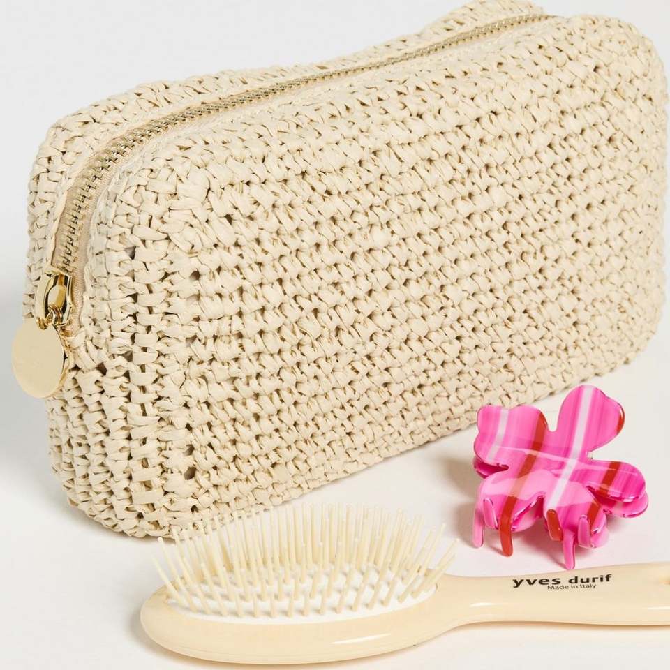 Custom Beige Nylon Zipper Portable Reusable Clutch Makeup Purse for Women Beach Cute Summer Holiday Traveling Cosmetic Bag