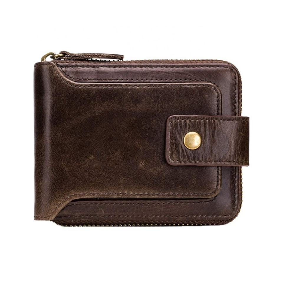Custom Bifold Engaved Wallet RFID Blocking Mens Credit Card Holder with Zipper Leather Zip Purse Money Bag for Man