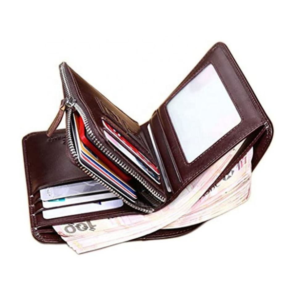 Custom Bifold Engaved Wallet RFID Blocking Mens Credit Card Holder with Zipper Leather Zip Purse Money Bag for Man