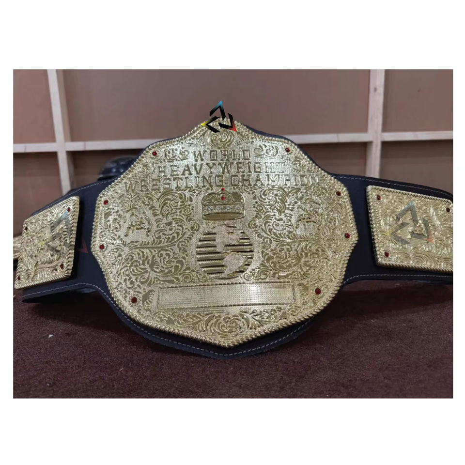 Custom Big Gold World Heavyweight Wrestling Championship Belt Brass 4mm Adult Size - Gold Plated Metal Plates & Leather Strap