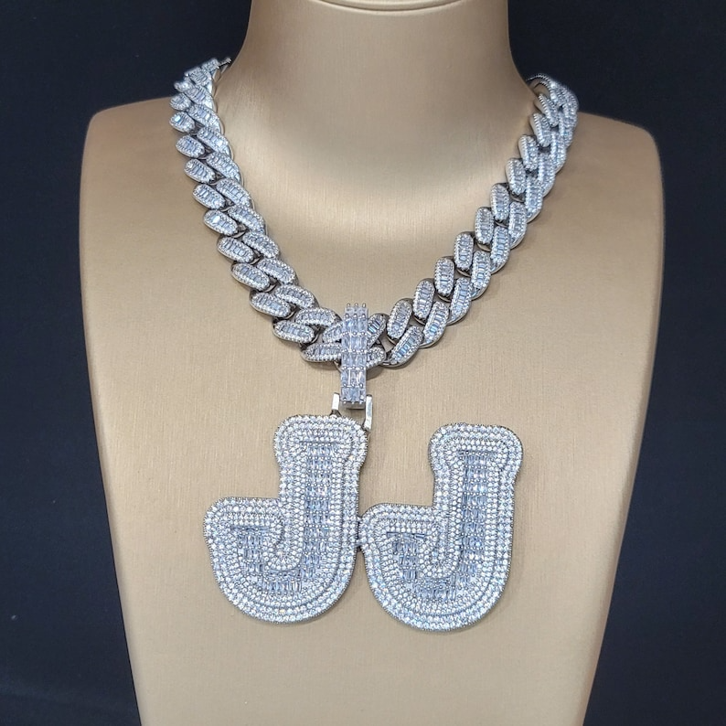 Custom Heavy Baguette Letters Pendant 15MM Chain Iced Nameplate Necklace Hip Hop Style Children's Jewelry Featuring Moissanite