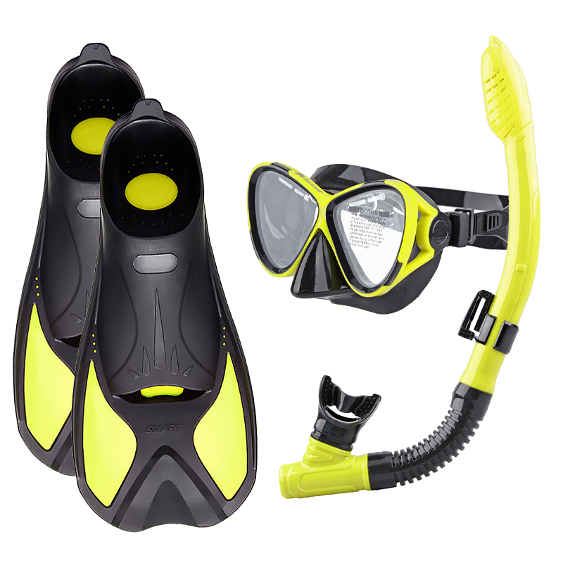 Custom Adult Water Sports Diving Equipment Big Nose Silicone Diving Mask with Glass Lenses Waterproof Dry Snorkel Wrap Flippers
