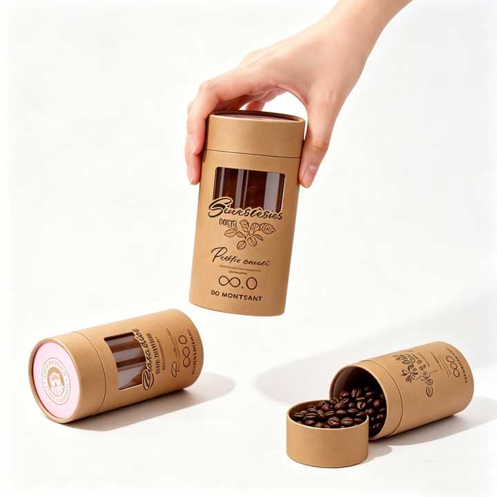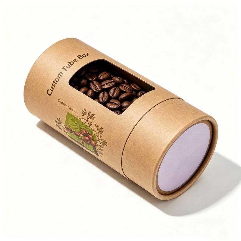 Custom Biodegradable Kraft Paper Tube Packaging With Clear Window Food Grade For Coffee Beans And Organic Tea