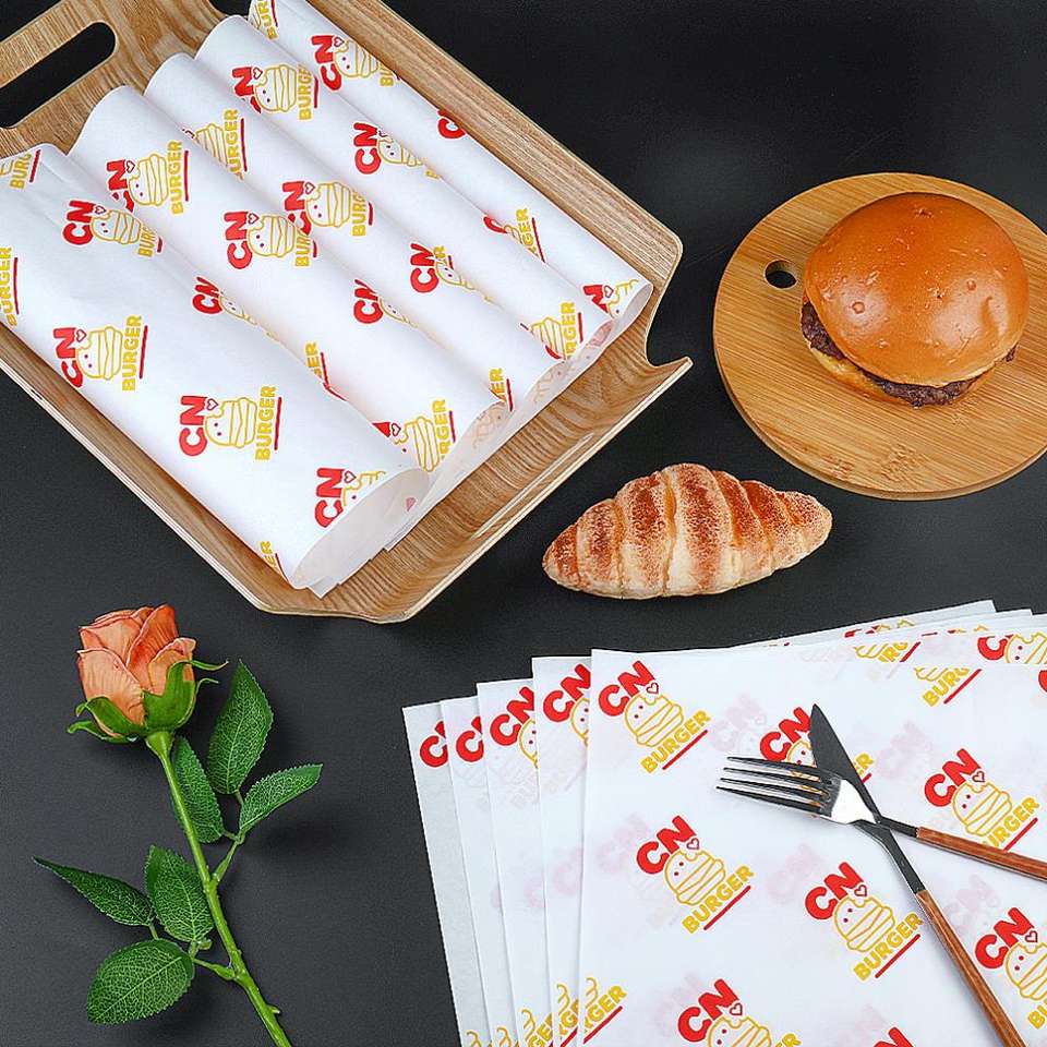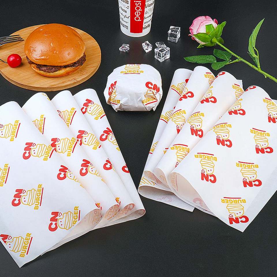 Custom Disposable Biodegradable PE Coated Custom Logo Food Grade Hamburger & Snack Grease Proof Paper Food Wrapping