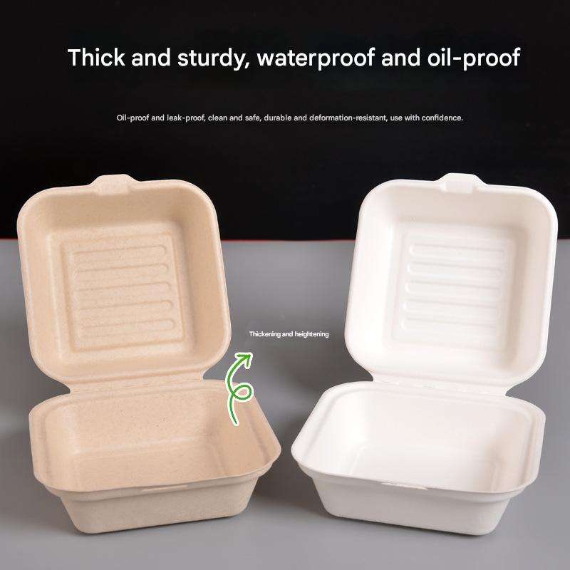 Custom Biodegradable Sugarcane Bagasse 6x6 Inch Burger Hamburger Box Burger Packaging Box Takeaway Food